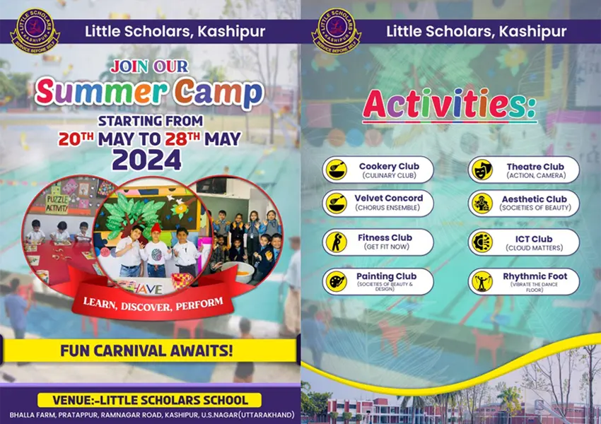 Bhalla Farm Pratappur, Ramnagar Road, Kashipur littlescholars.kashipur@gmail.com +91 9105666371 Facebook-f Instagram Linkedin About Founder’s Desk Principal’s Desk School Management Managing Committee Infrastructure Admissions Admission Helpdesk / School Visit Admission Procedure Registration Fee Structure School Timings FAQ’s Student Life Academics Sports Co-Curricular Counselling Forms Swimming Pool Form Blood Donation Form Parent Form Student Form Achievements Events Calendar Toppers Cabinet Transfer Certificate News/Calendar Student Hand Book Newsletter / Scholars Times Disclosures Book List Safety Certificates & Affiliations CBSE-OASIS Mandatory Public Disclosure Social Work SETU Socio-Cultural Development Contact Reach Us Career Blogs X e-Care Login SUMMER CAMP CONSENT SUMMER CAMP CONSENT Student Name Parents Name Parents Contact No. Class ---Choose Class--- 1A 1B 2A 2B 3A 3B 3C 4A 4B 5A 5B 6A 6B 6C 7A 7B 7C 8A 8B 8C 9A 9B 9C 9D Activity ---Choose Activity--- Cookery Club Theatre Club Velvet Concord Aesthetic Club Fitness Club ICT Club Rhythmic Foot Acceptance By submitting this form, I acknowledge that I have read and agree to the terms and conditions of the event/activity. I also consent to any necessary safety measures and guidelines. Submit